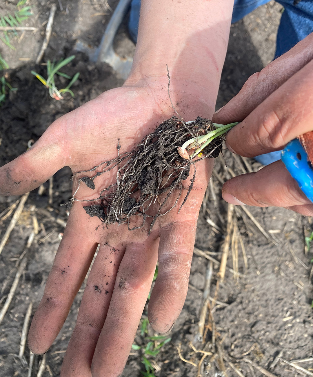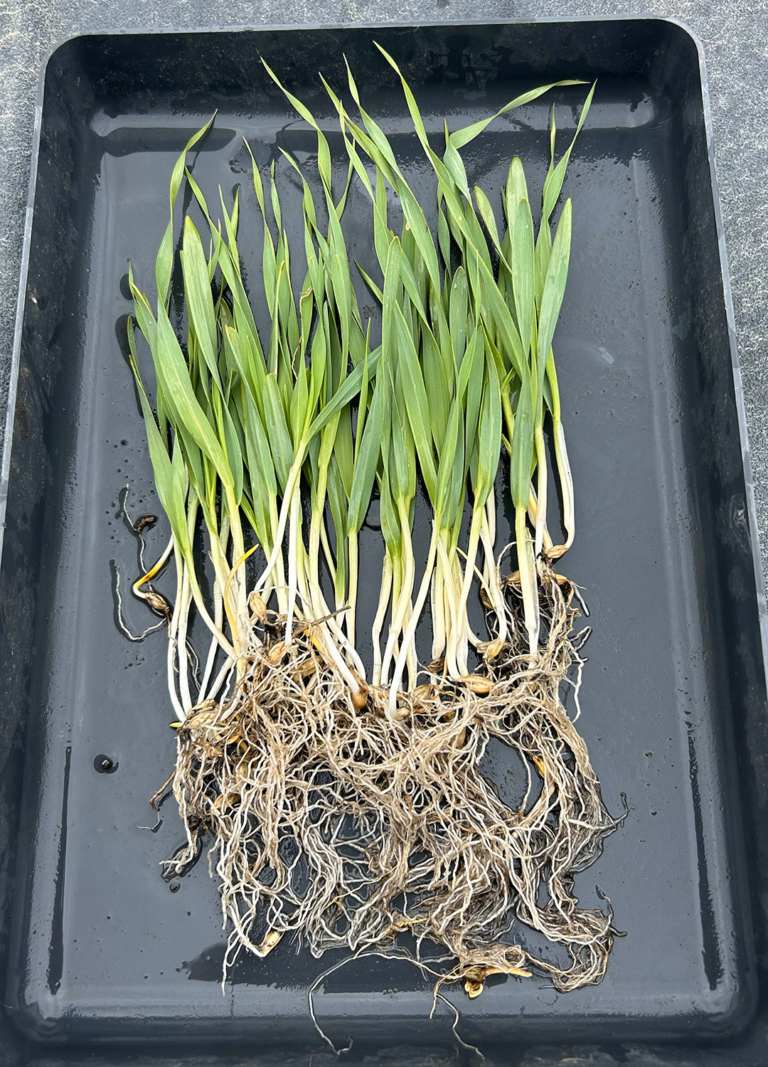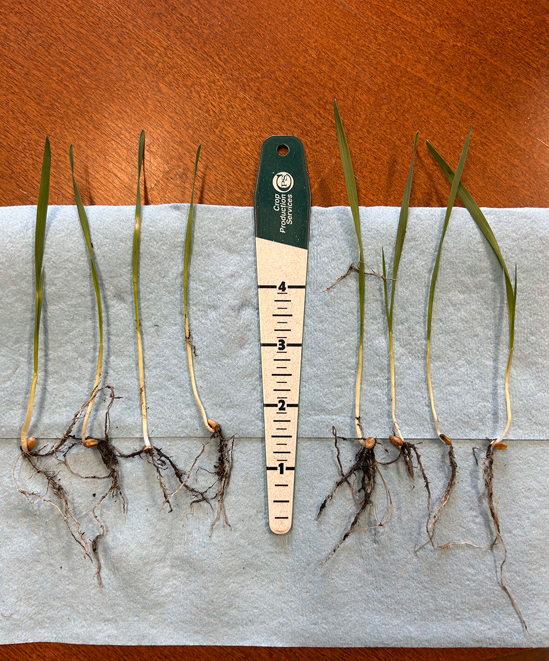 13 day old wheat treated with Surgo Maxx and Incitavus Maxx – already showing less heat/wind damage, taller, wider and healthier leaves, and deeper rooting when compared to a leading biological treatment.
